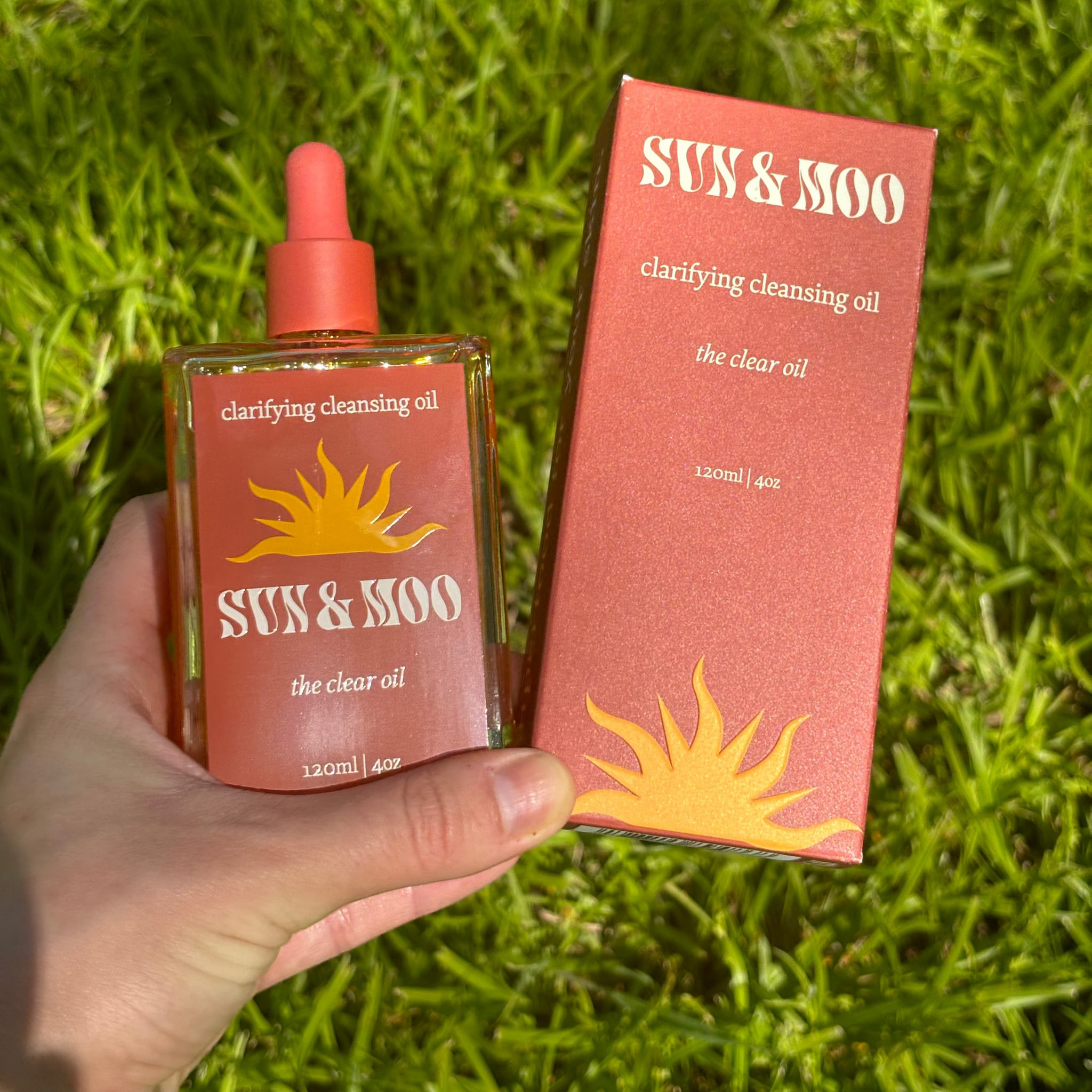 Elevate your skincare routine with Sun & Moo's 4oz, The Clear Oil, a versatile cleansing and moisturizing oil infused with organic herbs and flowers. This gentle yet effective formula removes makeup, dirt, and impurities without stripping the skin, leaving it hydrated, balanced, and glowing.