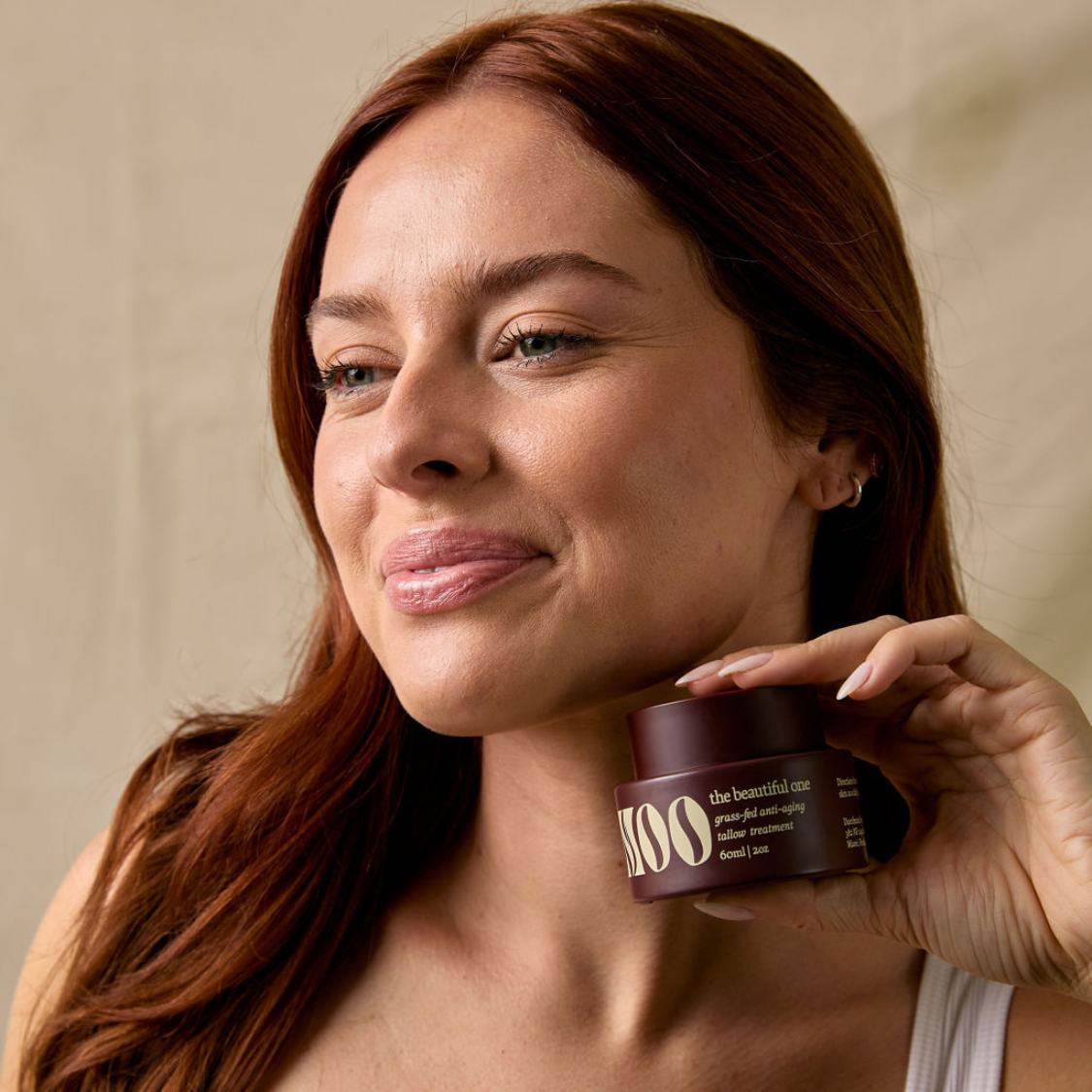 The Beautiful One Tallow Balm is a decadent blend designed to renew and restore skin from within. Infused with soothing herbs, delicate flowers, organic botanicals, and pastured colostrum, this balm targets deep wrinkles, scars, and uneven texture while promoting collagen production and a radiant glow. Grass-fed tallow delivers essential nutrients, while colostrum helps repair and rejuvenate at a cellular level. With its silky texture and light, jasmine-kissed aroma, The Beautiful One is a luxurious treatment that hydrates, smooths, and transforms your skin for lasting beauty.