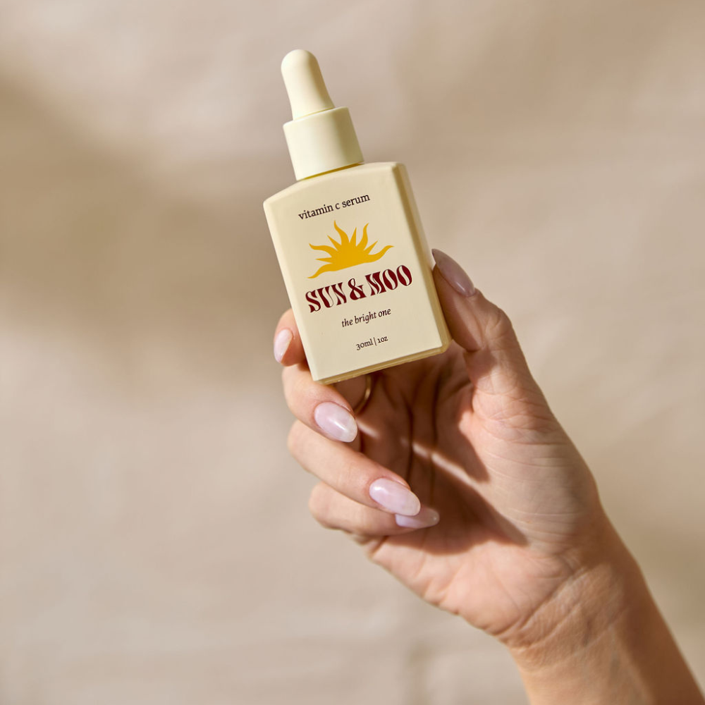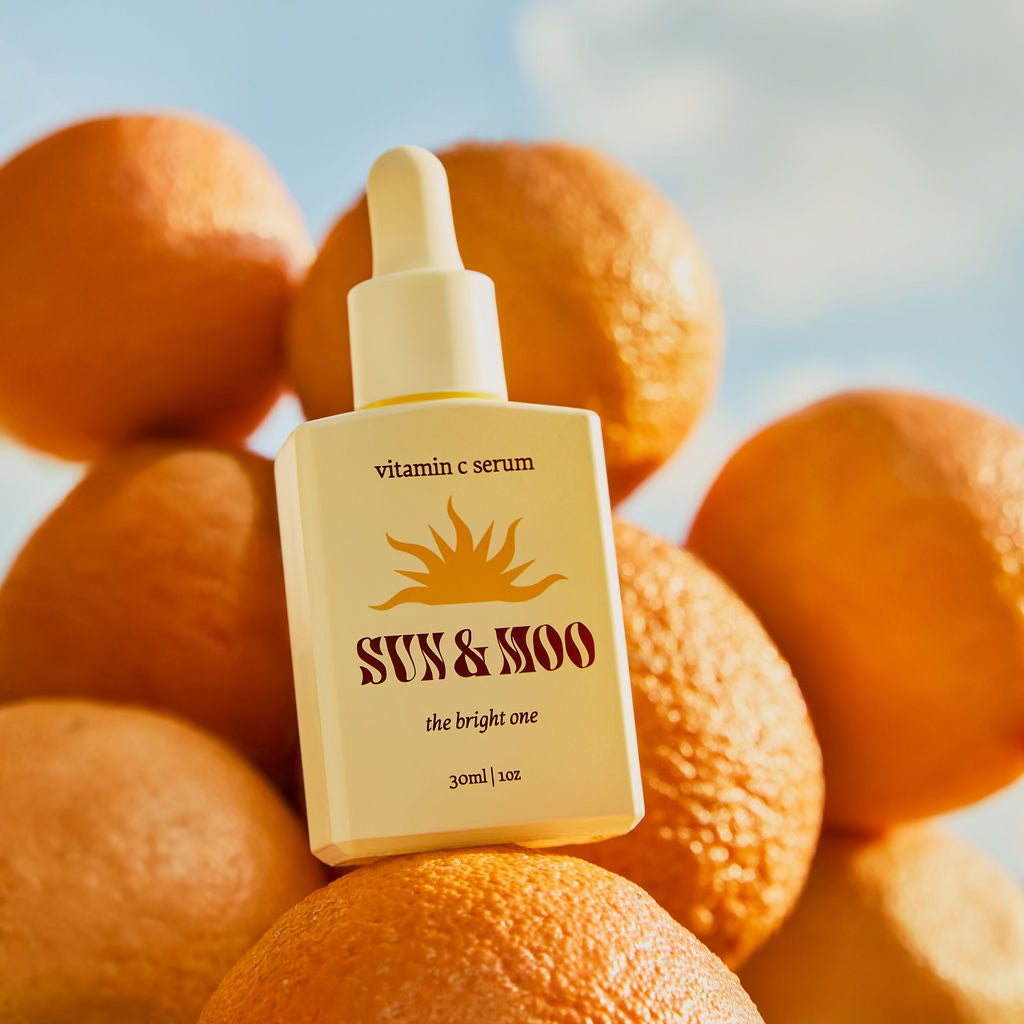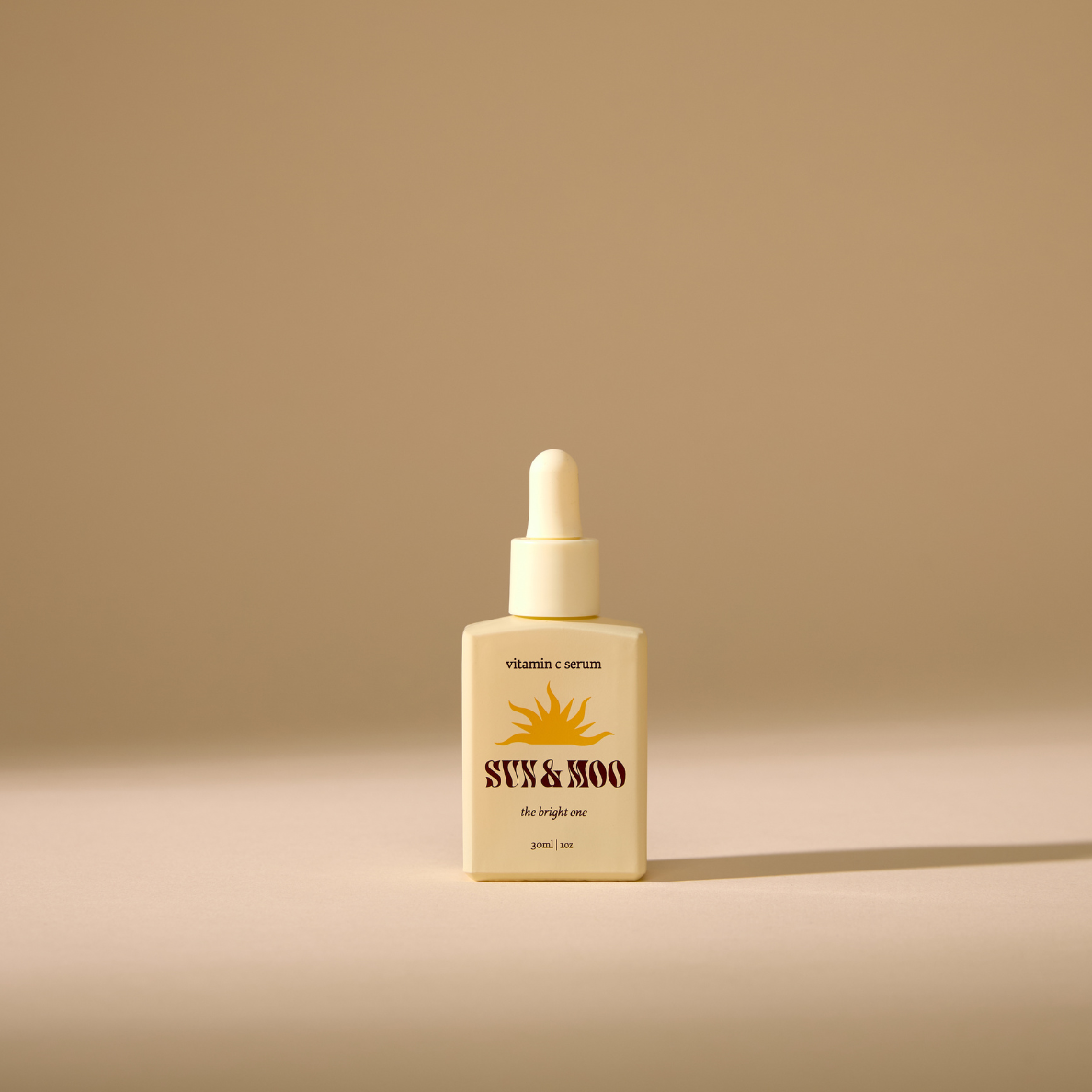 Sun & Moo's The Bright One is a revitalizing Vitamin C serum crafted to brighten, even skin tone, and boost collagen production. Infused with Tetrahexyldecyl Ascorbate, a stable, oil-soluble form of Vitamin C, and enriched with organic botanical extracts, it deeply hydrates, protects against free radicals, and promotes a radiant, youthful glow.